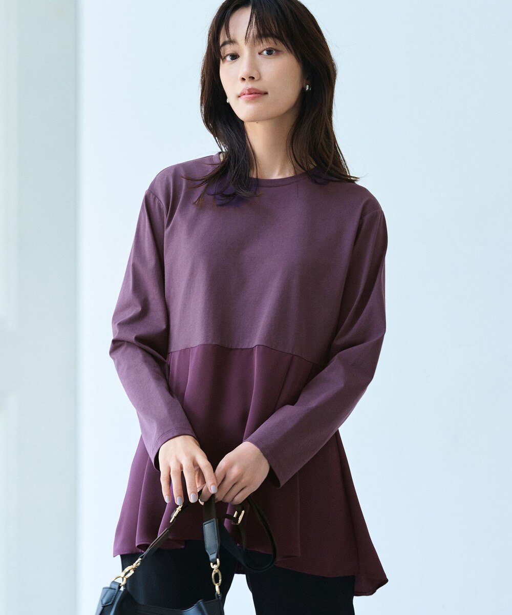 【オンワード】 ANY>トップス 【WEB限定】サテンコンビペプラムカットソー ワイン F レディース