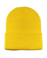 Unisex Plain Warm Knit Beanie Hat Cuff Skull Ski Cap Gold Color Yellow