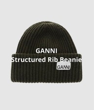GANNI Olive Green Rib Beanie Hat Kalamata