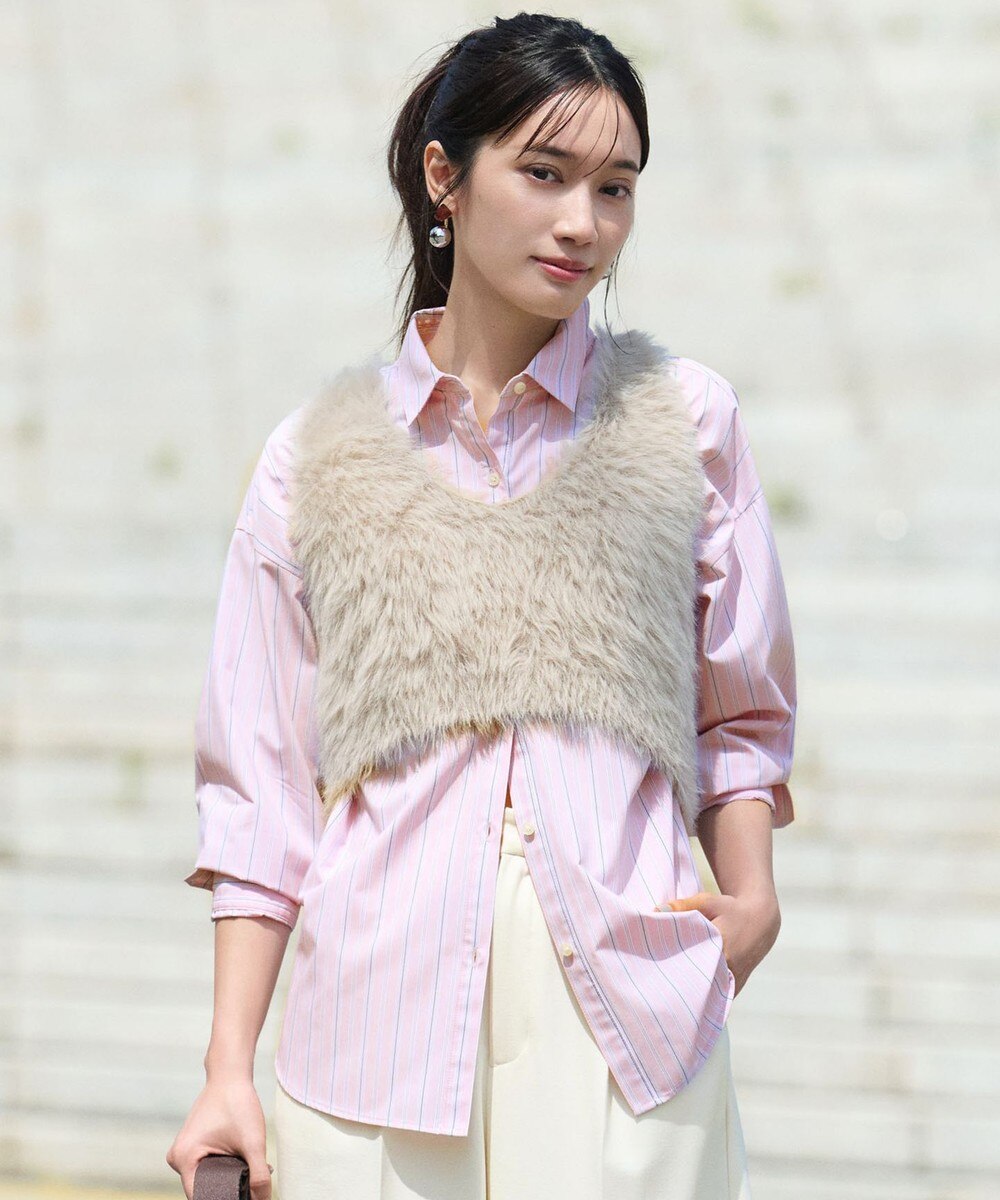 【オンワード】 ANY>トップス オーバーサイズシャツ ベージュストライプ L レディース