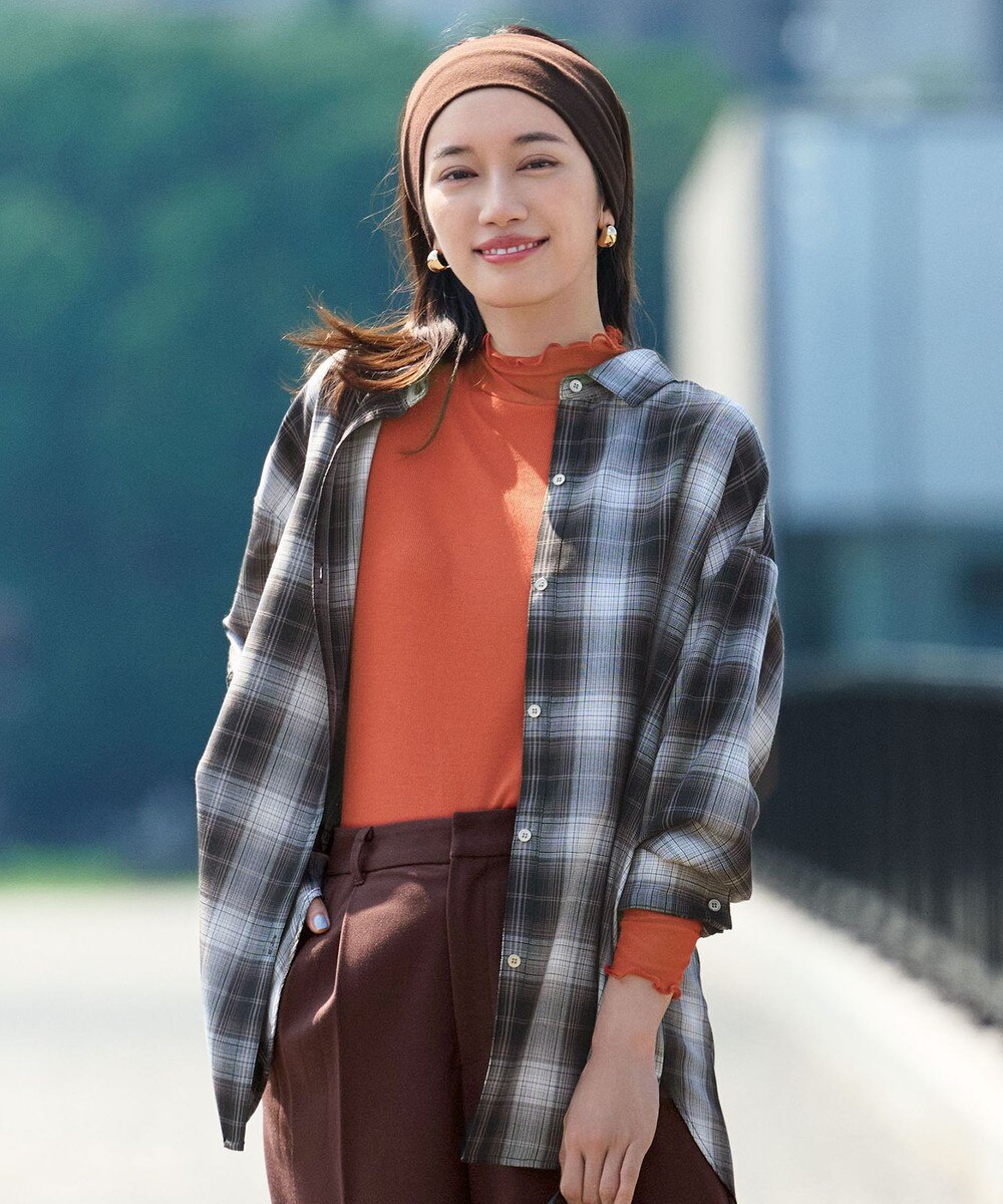 【オンワード】 ANY>トップス オンブレーチェックオーバーシャツ ブラウン F レディース