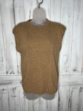 Cider High Neck Knit Sweater Vest Small Camel Ribbed Quiet Luxury Minimalist
