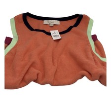LOFT Colorblock Knit Sweater Vest Orange Cotton Preppy Layering NWT XL