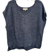 Lucky Brand Blue Textured Knit V Neck Sleeveless Sweater Vest Top Womens XL