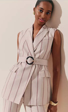 NWT ANN TAYLOR FLAX PINSTRIPE BELTED VEST SZ 12