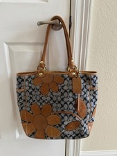 Coach Bleeker Denim Vanchetta Leather Floral Appliqué Gallery Large Tote Bag