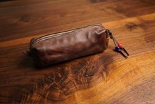 Leather Pencil Case - Handcrafted Full-Grain Zipper Leather Pen Antique Brown