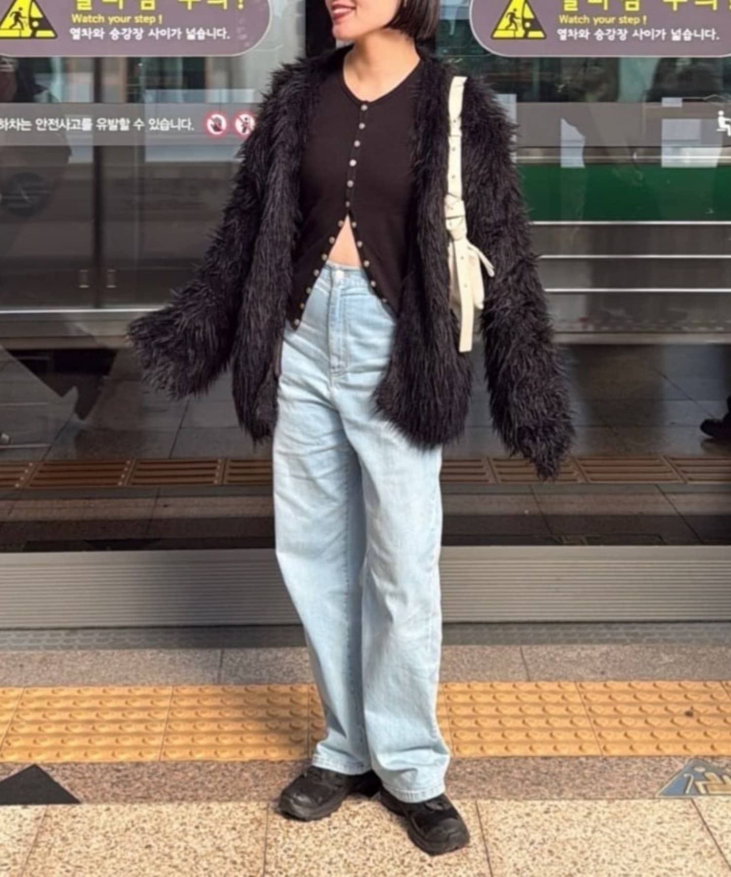 OUTLET(アウトレット) レディース 【ear PAPILLONNER】シャギーファーカーディガン ブラック