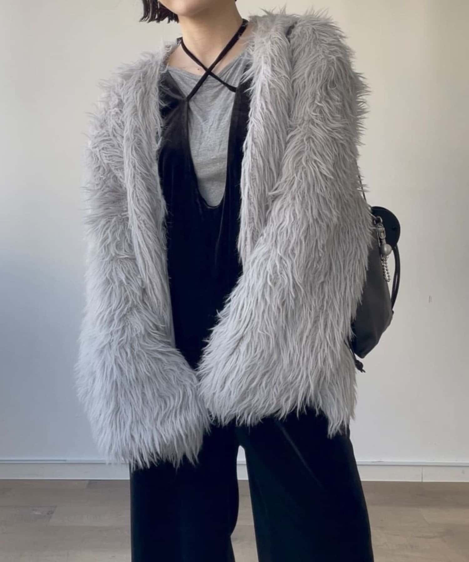 OUTLET(アウトレット) レディース 【ear PAPILLONNER】シャギーファーカーディガン ライトグレー