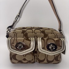 Coach Legacy Signature C Silver Leather Mini Bag Double Turn Lock Pouch Y2K