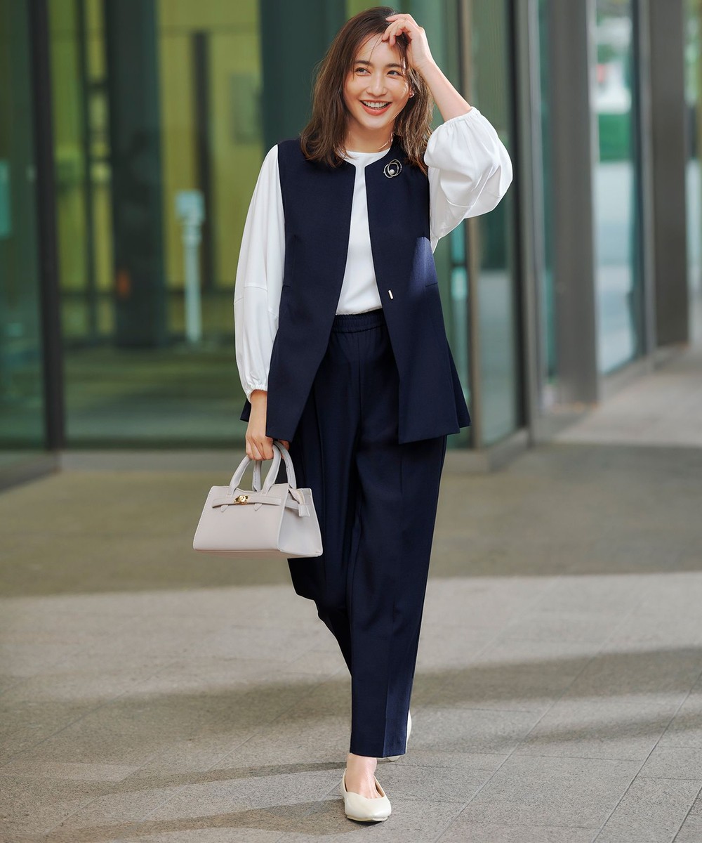 【オンワード】 ANY L>ワンピース 【3SET】きちんと見え3点コーデセット(ブラウス+ジレ+パンツ) ネイビー XL レディース