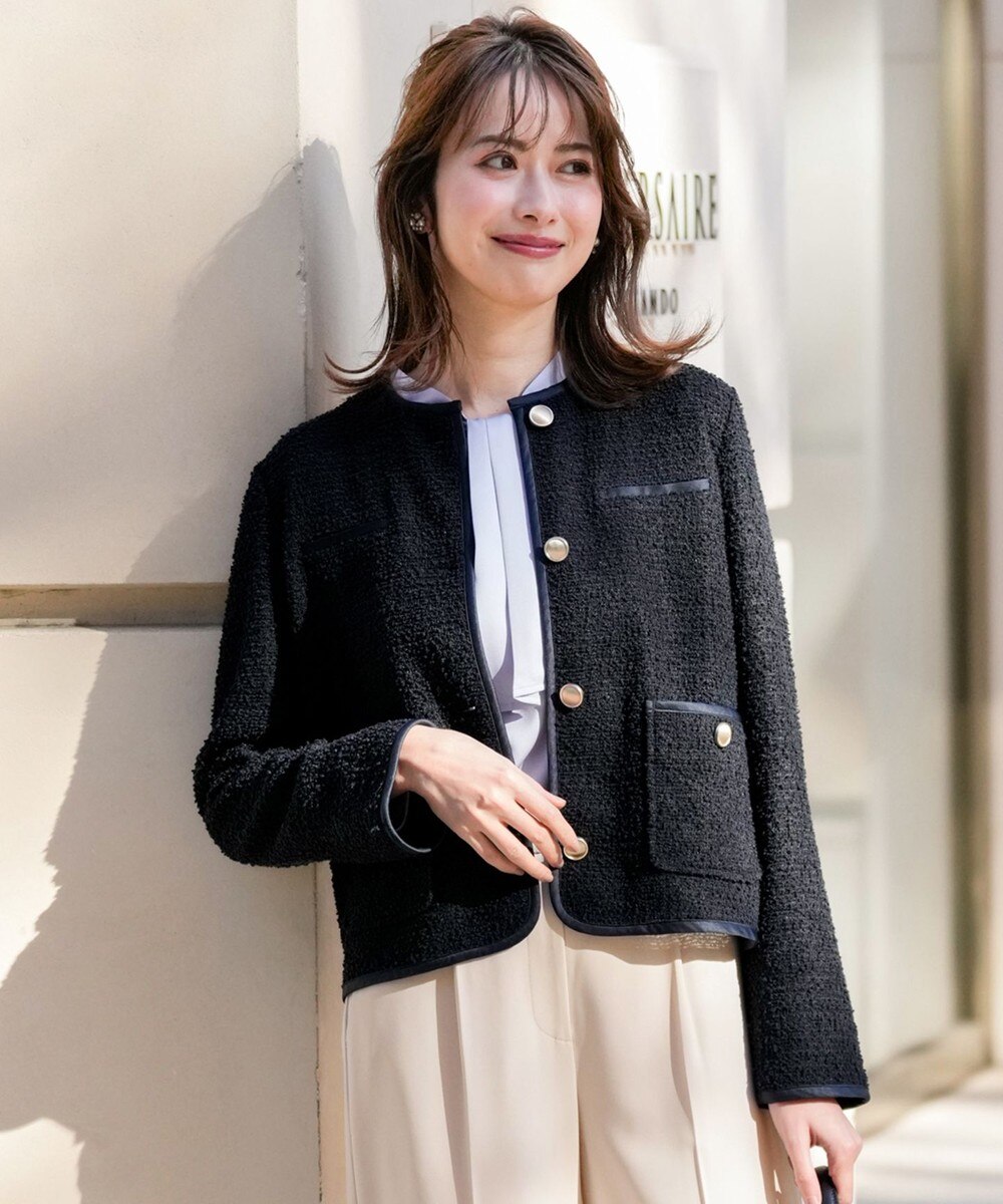 【オンワード】 ANY SIS L>ジャケット/アウター ネップツイード ジャケット ネイビー XL レディース