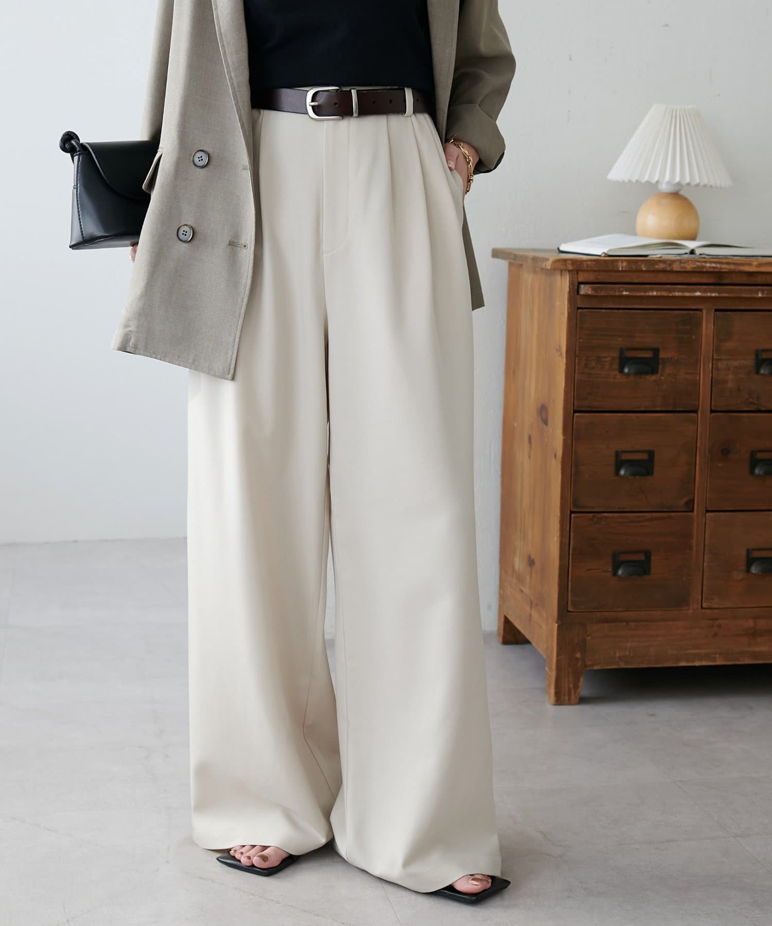COLONY 2139(コロニー トゥーワンスリーナイン) レディース 【低身長サイズあり/新色追加】ワンタックワイドスラックス ベージュ