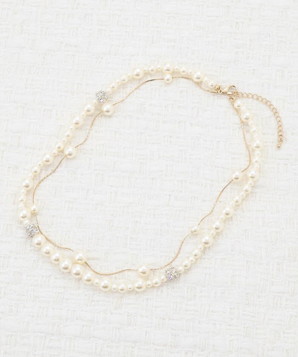 【オンワード】 ANY SIS>アクセサリー 2連パール調チェーン ネックレス キスカ F レディース