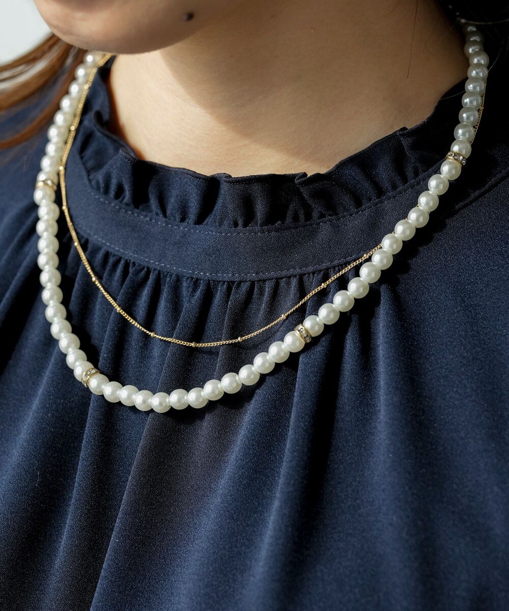 【オンワード】 ANY SIS>アクセサリー 2連パール調チェーン ネックレス キスカ F レディース