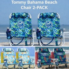 2-PACK Tommy Bahama Beach Chair 5-Position Lay Flat Aluminum w Cooler Cup Holder