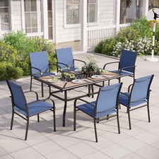 7 Piece Patio Dining Set Outdoor Table Chairs Set with Umbrella Hole Blue