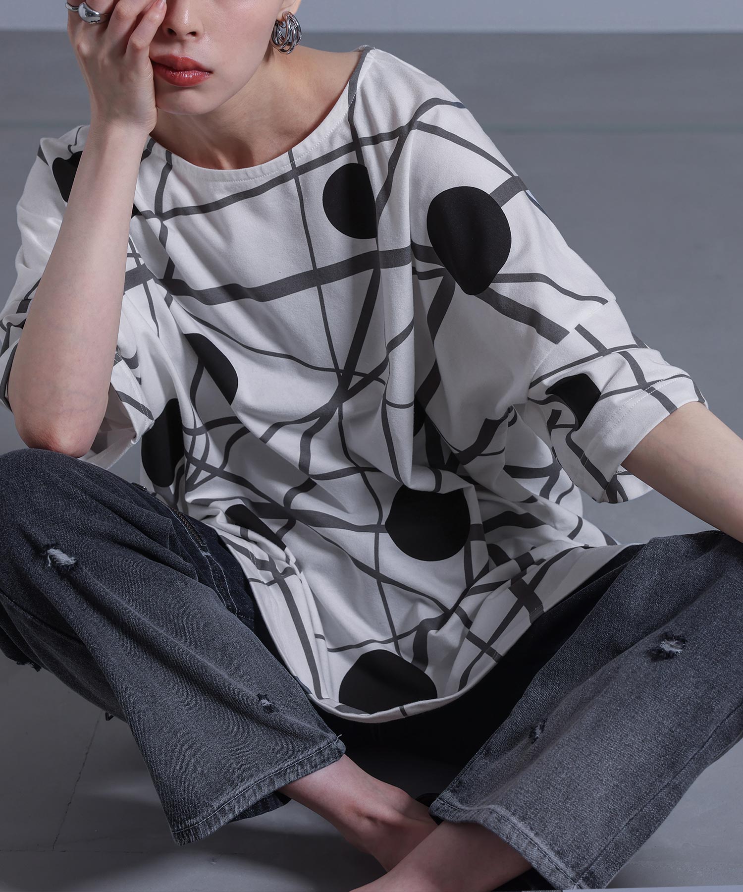 ランダムドット柄モードTシャツ※メール便可※【10】 フリーサイズ オフホワイト