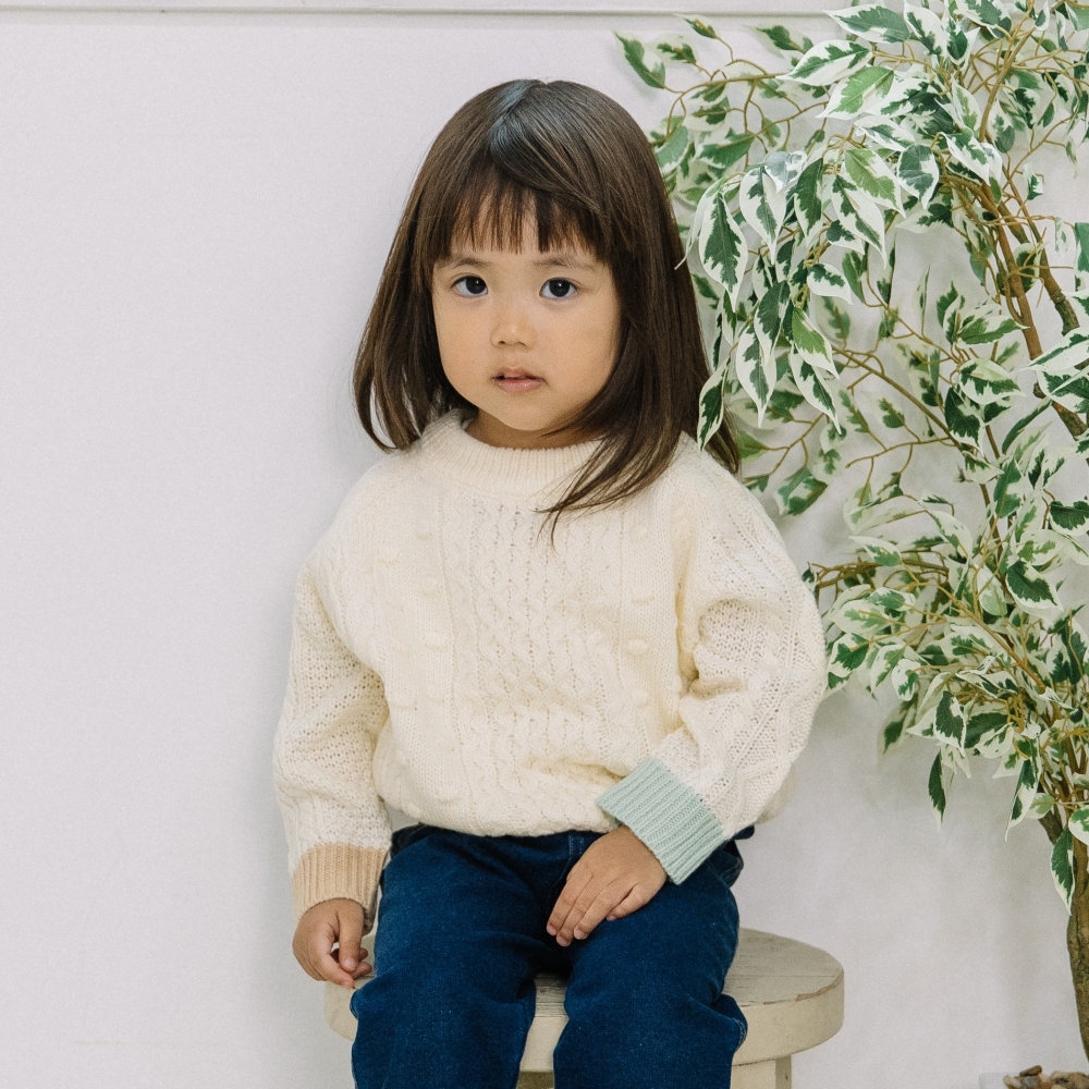 ベビーザらス限定 RAT-A-TATR ラッタッター ケーブルニット(ホワイト×90cm)
