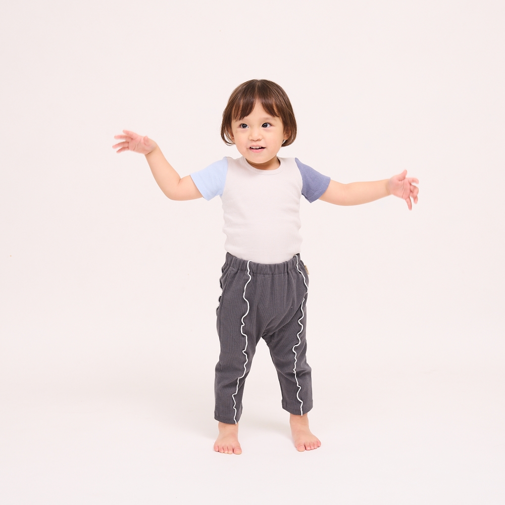 半袖シャツ肌着 2枚組 リブボーダー グレー×90cm ベビーザらス限定