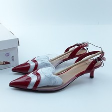 A New Day Eleanor Heart Pump Womens US 6.5 Red Clear Pointed Toe Kitten Heel