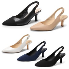 Women Slip On Pump Shoes Low Kitten Heel Pointed Toe Comfort Slingback Pumps