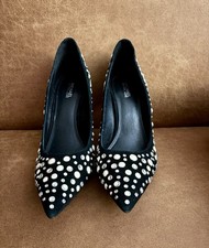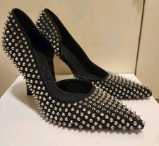 NEW ZARA Black/Heavy Silver Spike Stud Pointy D’Orsay Pumps Heels Sz. 8/38 $150