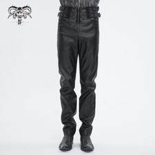 Devil Fashion Men Black Gothic Punk Studded Buckle Strap Fitted Pants Trousers