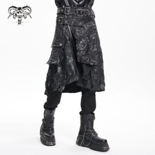 Devil Fashion Men Black Gothic Punk Buckle Blet Zipper Asymmetric Long Skirt