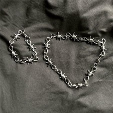 2Pcs/Set Punk Rock Emo Goth Silver Barbed Wire Bramble Chain Choker Necklace 20"