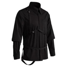 Mens Shirt Double Sleeves Gothic Fashion Tops Loose Strap Punk Casual Larger Sz