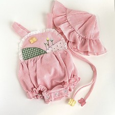Baby Girl Romper & Sun Hat Set Pink Sunsuit 6/9 Month Flowers Butterflies 80’s