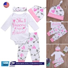 4PCS Newborn Infant Baby Girl Clothes Romper Bodysuit Pants Headband Hat Outfits