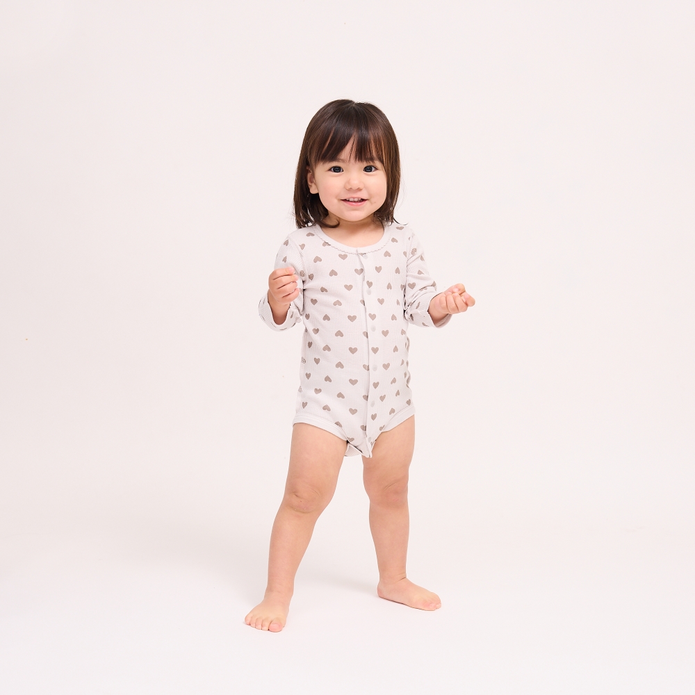長袖前開きロンパース肌着 2枚組 ワッフル ハート グレー×80cm ベビーザらス限定