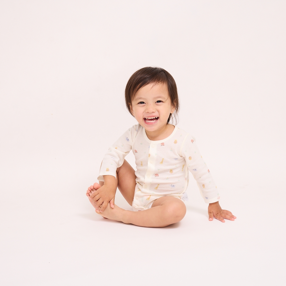 長袖前開きロンパース肌着 2枚組 ワッフル アニマル グレー×70cm ベビーザらス限定