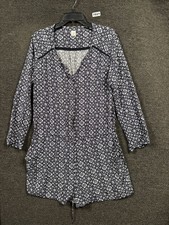 Gap Floral Romper Womens Size L Blue White V-Neck Long Sleeve Elastic Waist