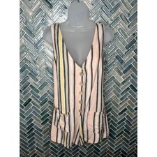 FOREVER 21 LINEN BLEND SMALL SLEEVELESS PASTEL STRIPED BUTTON BEACH ROMPER NICE