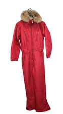 Post Card Lady's Snow Ski Jump Suit Red Quilted Lined Hooded Fur Trim US Size 10