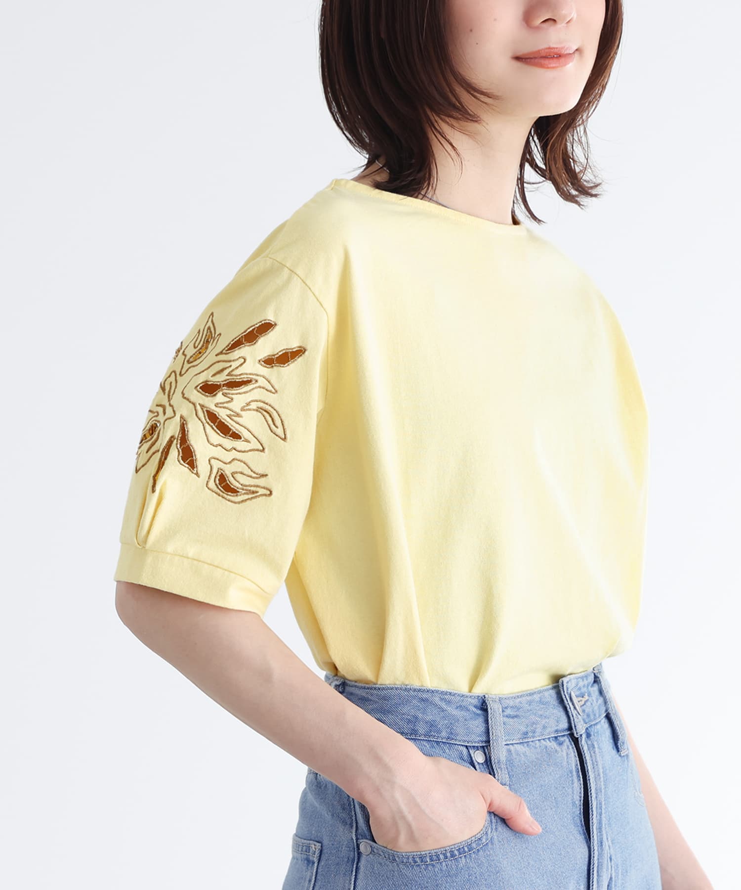 オリジナル刺繍袖カットTシャツ※メール便可※【10】 1(M~L) ニュアンスイエロー