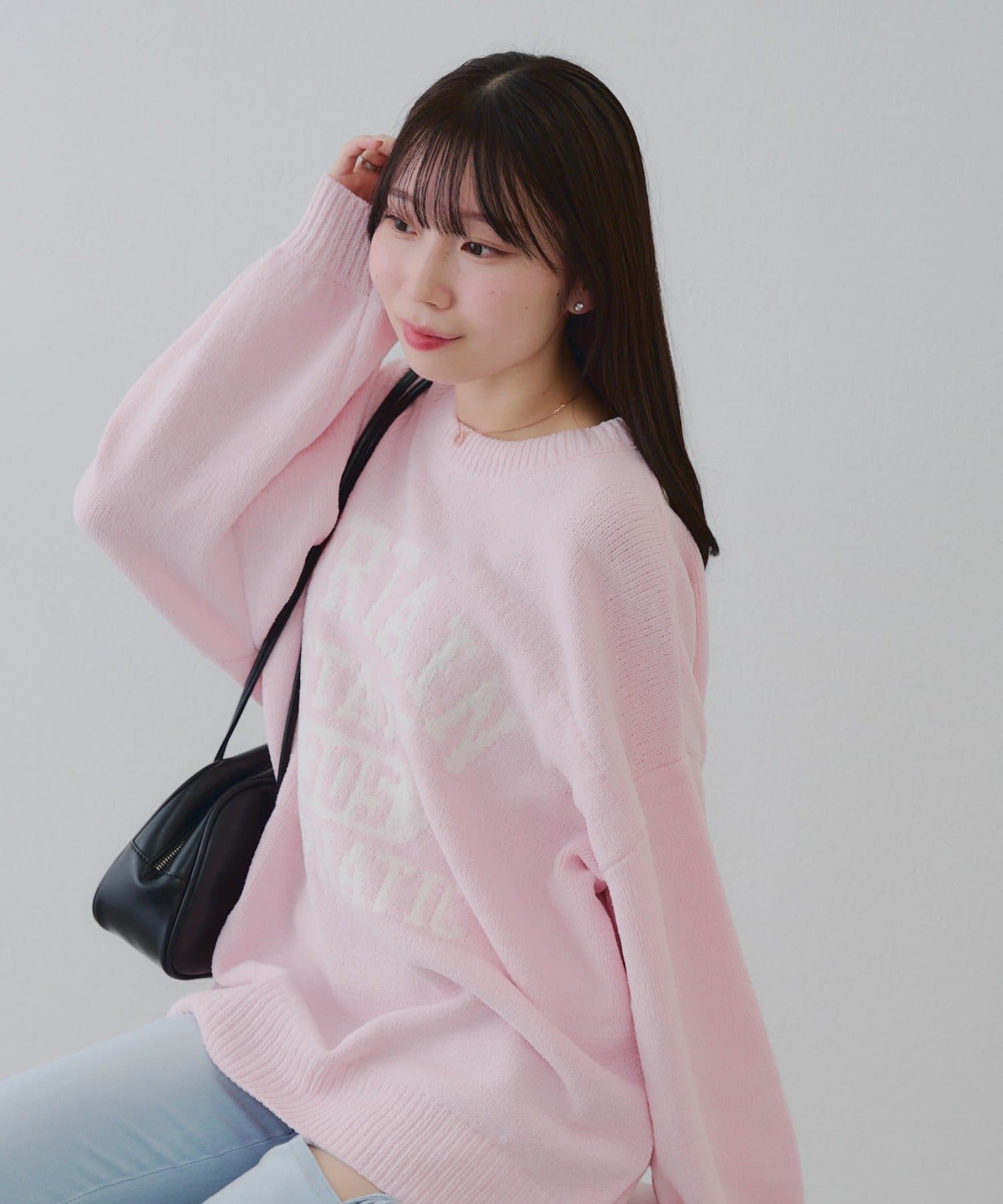NICE CLAUP / OLIVE des OLIVE OUTLET(ナイスクラップ / オリーブ デ オリーブ アウトレット) レディース 【RMAF】ロゴモールニット ピンク