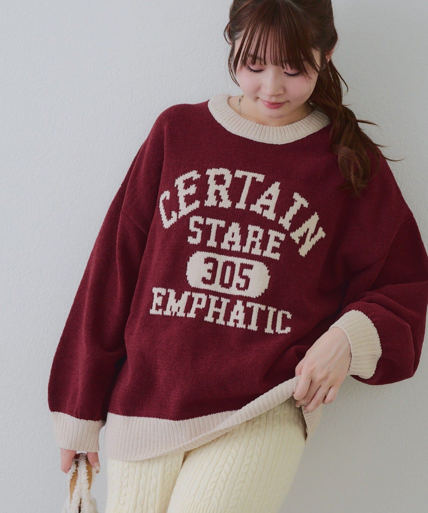 NICE CLAUP / OLIVE des OLIVE OUTLET(ナイスクラップ / オリーブ デ オリーブ アウトレット) レディース 【RMAF】プードルシャギーロゴプルオーバー アイボリー