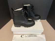 New! Womens La Canadienne Connie Black Leather Zipper Combat Boots. Size 6M.