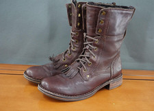 UGG Jena Boots Womens Size 8.5 Brown Leather Mid Calf Lace Up Side Zip Shearling