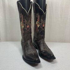 J. B. Dillon Distressed Embroidered Boots Size 6.5B Dark Brown