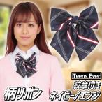 (4点までメール便も可能) 制服 リボン ネイビー 女子高生 コスプレ ネクタイ 学生服/ ティーンズエバー 柄リボン ネイビー×エンジ×紋章 (B-2859_870425)