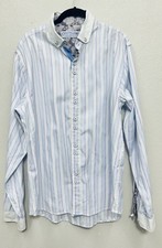 John Lennon Button Down Shirt Mens Large Blue Stripe Long Sleeve Floral Cuffs