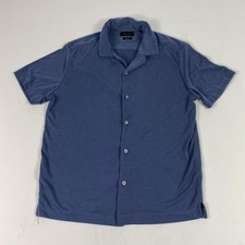 Porter & Ash Shirt Mens Large Blue Modal Blend Knit Stripe Button Front