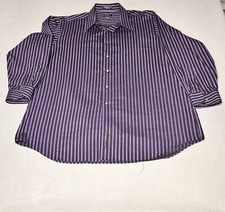 Noble House 💜 Shirt Men Large White Purple Stripe Long Sleeve Office