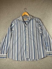 Eddie Bauer Stripe Button Up Shirt Mens Xl Casual Blue Office Collar Cotton *
