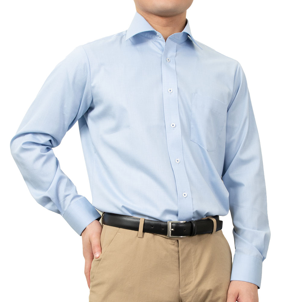 【LORDSON by CHOYA】/ワイシャツ/綿100%/BLUE/LORDSON by CHOYA スリムフィット 長袖ショートカラーボタンダウン ブルー ワイシャツ-衿43-裄丈86